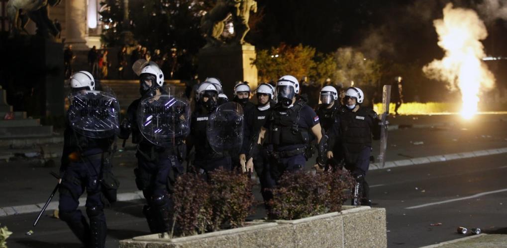Η αναγγελία αυτή έγινε η αφορμή να ξεσπάσουν βίαια επεισόδια στο Βελιγράδι, με μια ομάδα διαδηλωτών να εισβάλει ακόμη και στο κτίριο του κοινοβουλίου, ωστόσο απωθήθηκαν στη συνέχεια από τις αστυνομικές δυνάμεις. Οι συγκεντρωμένοι φώναζαν συνθήματα κατά του Βούτσιτς, ζητώντας την παραίτησή του. Κάποιοι από τους διαδηλωτές πετούσαν πέτρες και μπουκάλια στους αστυνομικούς, οι οποίοι «απάντησαν» με χρήση χημικών. Κάποια περιπολικά πυρπολήθηκαν, ενώ διαδηλωτές συγκρούστηκαν με την Αστυνομία και μπροστά στο κτίριο της κρατικής τηλεόρασης.
