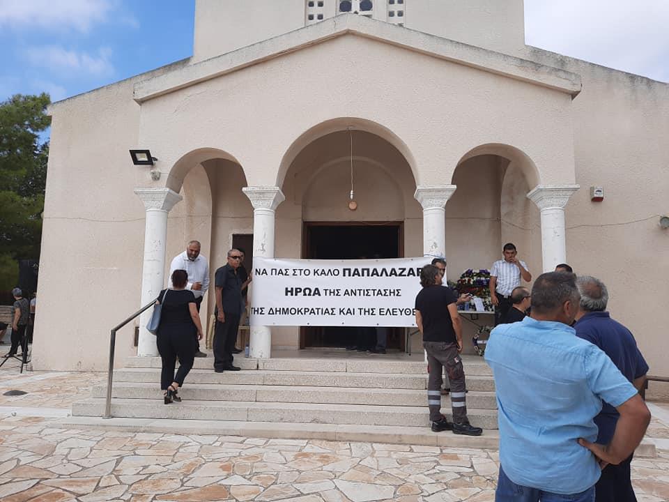 Η κηδεία τελέστηκε στην εκκλησία Αγίου Παντελεήμονος, στα νέα Χολέτρια της Πάφου. Η σορός του αγαπημένου Παπαλάζαρου εκτέθηκε στην εκκλησία από τις 15:00 το απόγευμα για το ύστατο χαίρε.Η ταφή έγινε στο παλιό κοιμητήριο των Χολετριών, στον τάφο που αναπαύονται τα παιδιά του ήρωες της Δημοκρατίας και της Ελευθερίας, Κυριάκος και Σωτήρης και η σύζυγος του Αγαθονίκη.