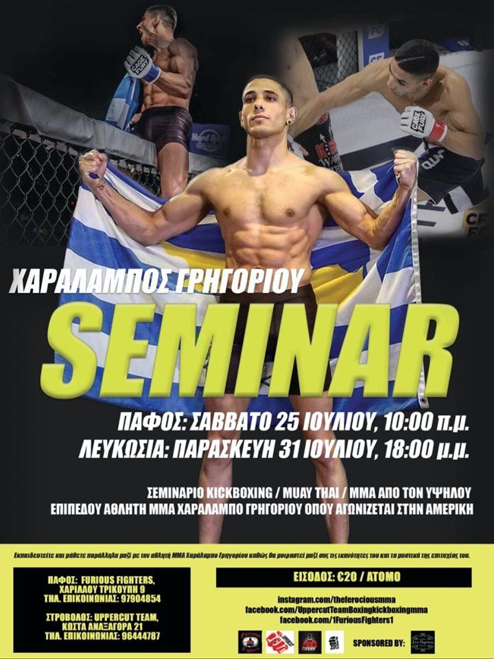 Σεμινάριο Κickboxing, Muay Thai και ΜΜΑ θα πραγματοποιήσει ο Κύπριος MMAer, Χαράλαμπος Γρηγορίου, στην Πάφο και στη Λευκωσία.