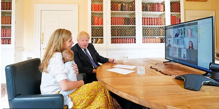 Την νέα φωτογραφία έδωσε στην δημοσιότητα η Ντάουνινγκ Στριτ με αφορμή την επέτειο του ενός χρόνου της διακυβέρνησης του Μπόρις Τζόνσον και δείχνει τον Βρετανό πρωθυπουργό με την σύντροφό του Κάρι Σίμοντς, η οποία κρατά στην αγκαλιά της τον μόλις 11 εβδομάδων Γουίλφρεντ, να συνομιλούν μέσω βιντεοκλήσης στο Zoom με μαίες, κάποιες από τις οποίες φρόντισαν την Σίμοντς στην διάρκεια του τοκετού στο Univercity College Hospital στο Λονδίνο.