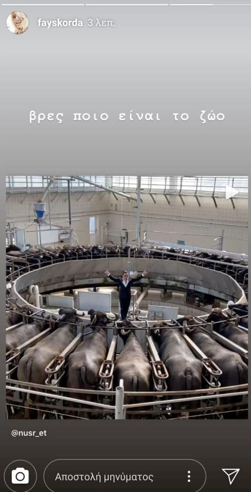 Θέση θέλησε να πάει δημόσια και η Φαίη Σκορδά, η οποία δημοσίευσε το εν λόγω στιγμιότυπο στα instastories και σχολίασε με νόημα: «βρες ποιο είναι το ζώο».
