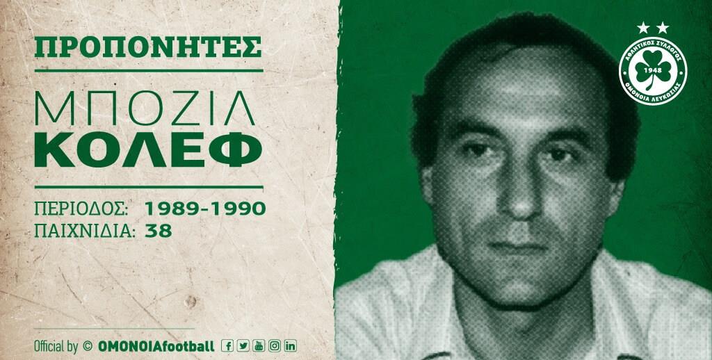 Ο Μποζίλ Κόλεφ κάθισε στον πάγκο της Ομόνοιας την αγωνιστική περίοδο 1989-1990 και κατάφερε να κερδίσει ένα τίτλο, αυτό της ασπίδας.