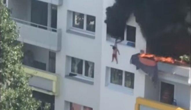 Από ύψος 12 μέτρων χρειάστηκε να πηδήξουν δύο παιδιά στην Γκρενόμπλ της Γαλλίας, όταν το διαμέρισμα που διαμένουν τυλίχτηκε στις φλόγες.