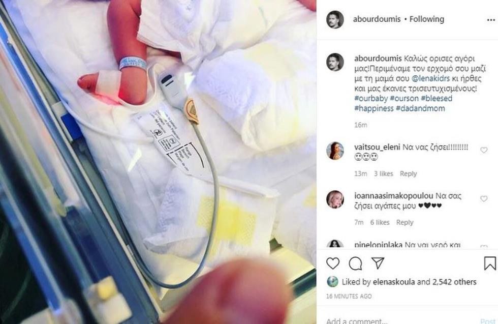 «Καλώς ορισες αγόρι μας! Περιμέναμε τον ερχομό σου μαζί με τη μαμά σου @lenakidrs κι ήρθες και μας έκανες τρισευτυχισμένους! #ourbaby #ourson #bleesed #happiness #dadandmom», έγραψε χαρακτηριστικά στη λεζάντα του ο πανευτυχής μπαμπάς.