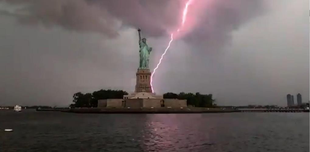 Στο βίντεο που αναρτήθηκε στο Twitter και έχει γίνει viral με περισσότερες από 1,3 εκατομμύρια προβολές σε λίγες ώρες, ένας κεραυνός σκίζει τον συννεφιασμένο ουρανό της Νέας Υόρκης και χτυπά ένα από τα διασημότερα μνημεία του πλανήτη, το Άγαλμα της Ελευθερίας.