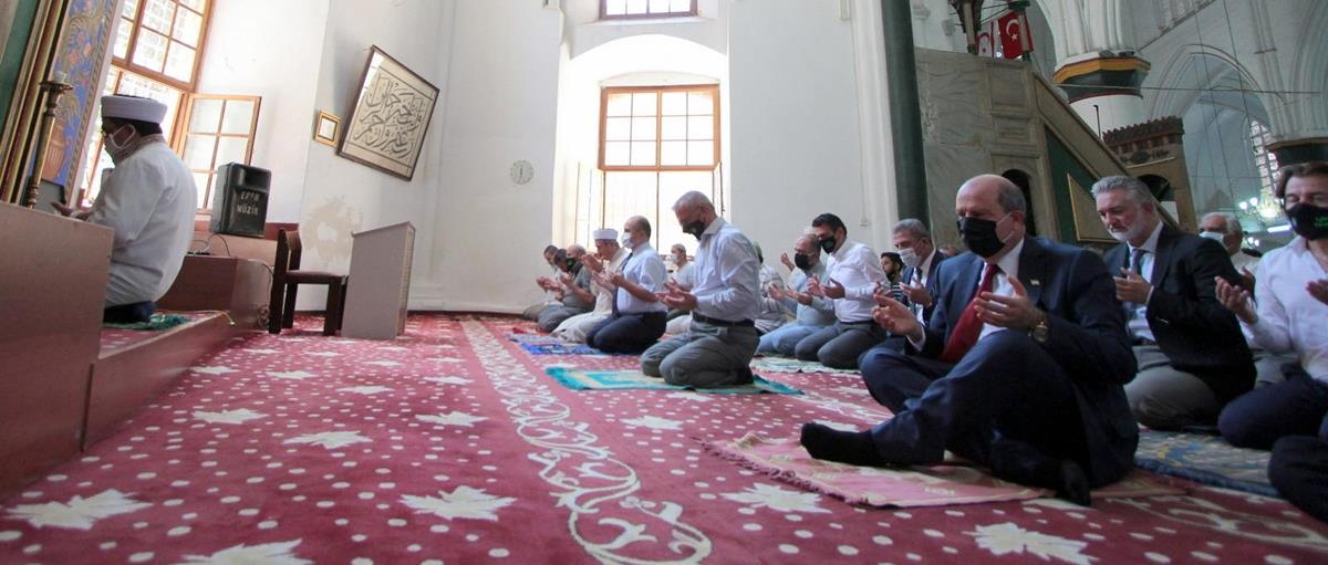 Αυτή τη φορά, την ώρα που ο Ταγίπ Ερντογάν βρισκόταν στον Ναό της Αγίας Σοφίας στην Κωνσταντινούπολη και συμμετείχε στην πρώτη προσευχή, μετά την απόφαση του για να μετατραπεί σε τζαμί, ο Ερσίν Τατάρ βρισκόταν στον συλημένο καθεδρικό ναό της Αγίας Σοφίας στην κατεχόμενη Λευκωσία και συμμετείχε στην προσευχή της Παρασκευής.