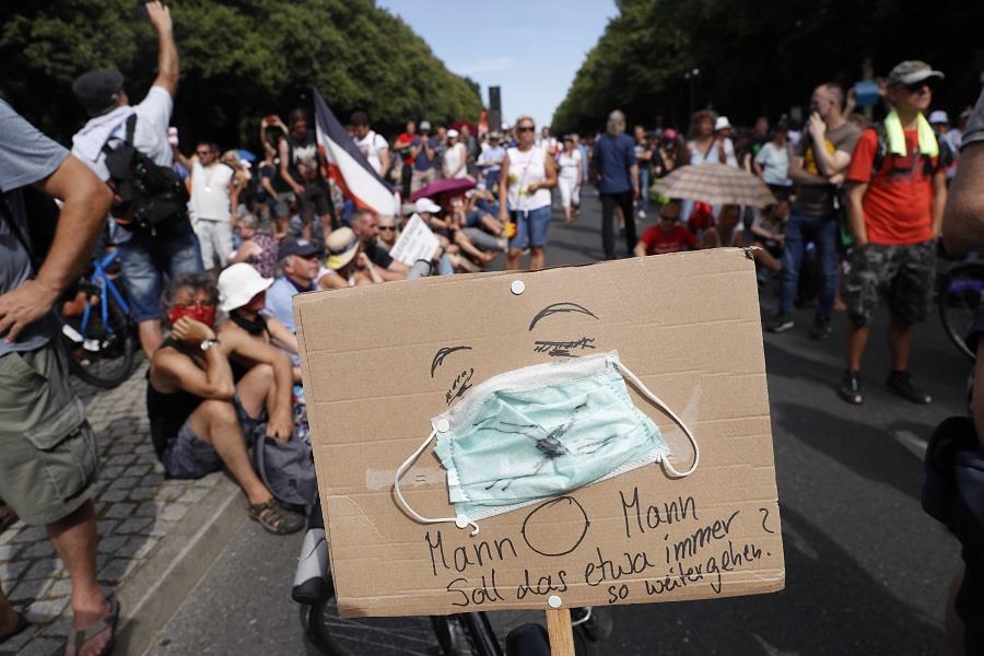Μαζικές διαδηλώσεις κατά των μέτρων προστασίας από τον κορωνοϊό διοργανώνονται σήμερα στο Βερολίνο. Με συνθήματα όπως "Εμείς είμαστε το δεύτερο κύμα" και "Αντίσταση", δεκάδες χιλιάδες αρνητές των περιορισμών που επιβάλλονται για την αποτροπή εξάπλωσης της πανδημίας, εκφράζουν την αντίθεσή τους στις σχετικές αποφάσεις της πολιτείας, ενώ υποστηρίζουν ότι "η μεγαλύτερη θεωρία συνωμοσίας είναι αυτή της πανδημίας".