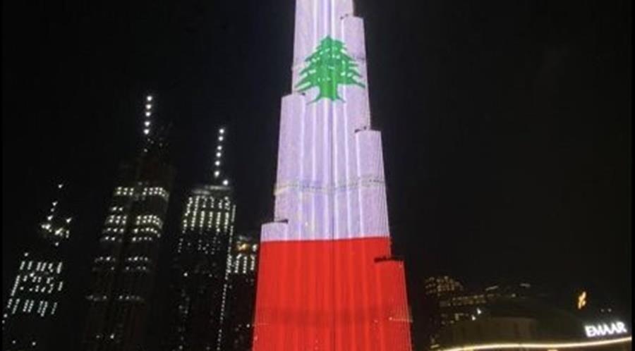 Στην πόλη Ντουμπάι, στα Ηνωμένα Αραβικά Εμιράτα, το υψηλότερο κτήριο στον κόσμο, με ύψος 827 μέτρα και 160 ορόφους φωταγωγήθηκε απόψε στα χρώματα της σημαίας του Λιβάνου ως ένδειξη συμπαράστασης στα δεκάδες θύματα της πρωτοφανούς τραγωδίας.