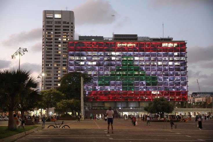 Το δημαρχείο του Τελ-Αβίβ φωτίστηκε απόψε με τα χρώματα της σημαίας του Λιβάνου, σε μια σπάνια ένδειξη αλληλεγγύης του Ισραήλ προς τη Βηρυτό, μετά την πολύνεκρη έκρηξη στο λιμάνι της πόλης, το απόγευμα της Τρίτης. Τεχνικά, το Ισραήλ είναι σε εμπόλεμη κατάσταση με τον Λίβανο εδώ και δεκαετίες.