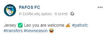 Με αρκετή δόση χιούμορ, αντιμετωπίζεται στο παγκόσμιο ποδόσφαιρο η διαφαινόμενη φυγή του Λιονέλ Μέσι από την Μπαρτσελόνα και σε αυτό το παιχνίδι, θέλησε να συμμετάσχει η Πάφος Fc.