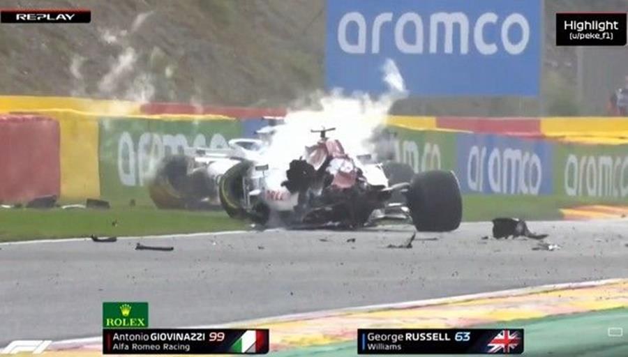 Ένα τρομακτικό ατύχημα είχαν στον 10ο γύρο του βελγικού Grand Prix ο Αντόνιο Τζοβινάτσι της Alfa Romeo και ο Τζορτζ Ράσελ της Williams.