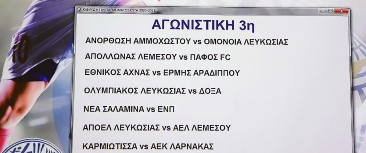Το πρόγραμμα της τρίτης αγωνιστικής του παγκύπριου πρωταθλήματος, ανακοίνωσε η ΚΟΠ.