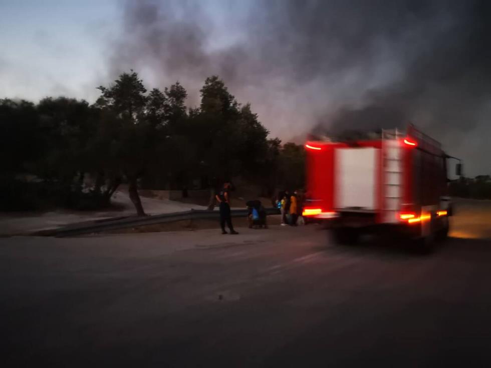 Η νέα εστία φωτιάς ξέσπασε λίγο μετά τις επτά το απόγευμα πίσω από το ΚΥΤ, ενώ η κατάσταση από τους καπνούς και το καμένο πλαστικό είναι αποπνικτική.