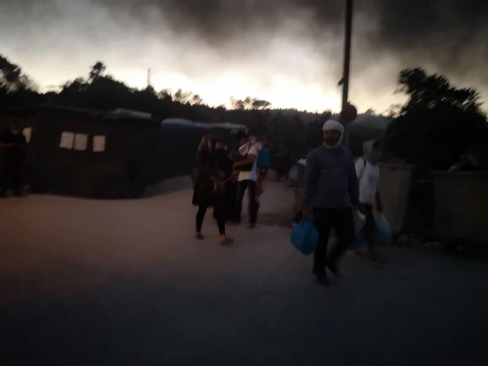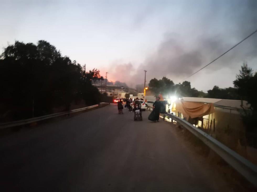 Σύμφωνα με πληροφορίες, καίγονται σκηνές που δεν είχαν καεί και οικογένειες τρέχουν άρον άρον με τα μωρά στην αγκαλιά τους να σωθούν από τις φλόγες.