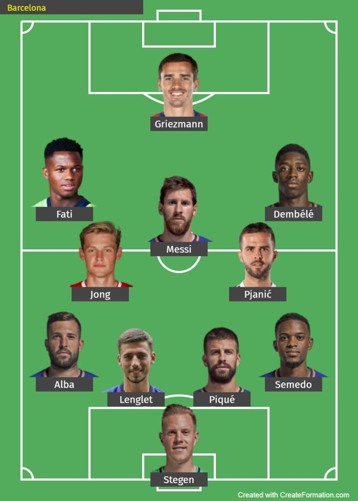 Μεγάλες αλλαγές και στα χαφ. Ο Ολλανδός υπολογίζει και τον Ντεμπελέ (μένει να δούμε σε τι κατάσταση θα είναι βεβαίως βεβαίως) αλλά κυρίως ποντάρει πολλά στον Ανσού Φατι. Παίζει στα άκρα, πάντα κοιτάει το τέρμα, κυνηγάει το ένας εναντίον ενός, έχει αυτοπεποίθηση και φυσικά σκοράρει! Η μεταγραφή του Ντεπάι εάν ολοκληρωθεί προφανώς και θ' αλλάξει τις ισορροπίες της 11αδας, αλλά είναι πιο πιθανό να το «πληρώσει» ο Ντεμπελέ παρά ο μικρός.