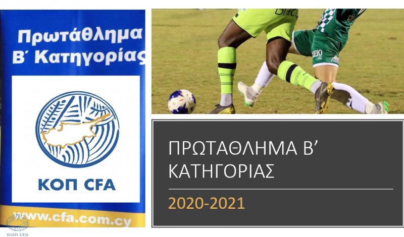 Σέντρα απόψε στο Παγκύπριο Πρωτάθλημα Β' Κατηγορίας. Μια διοργάνωση, στην οποία θα συμμετάσχουν 18 ομάδες και η οποία θα ολοκληρωθεί σε 34 αγωνιστικές. Με την ολοκλήρωση του Πρωταθλήματος, οι δύο πρώτες ομάδες θα ανέβουν στην πρώτη κατηγορία και οι έξι τελευταίες θα υποβιβαστούν στη Γ' Κατηγορία.