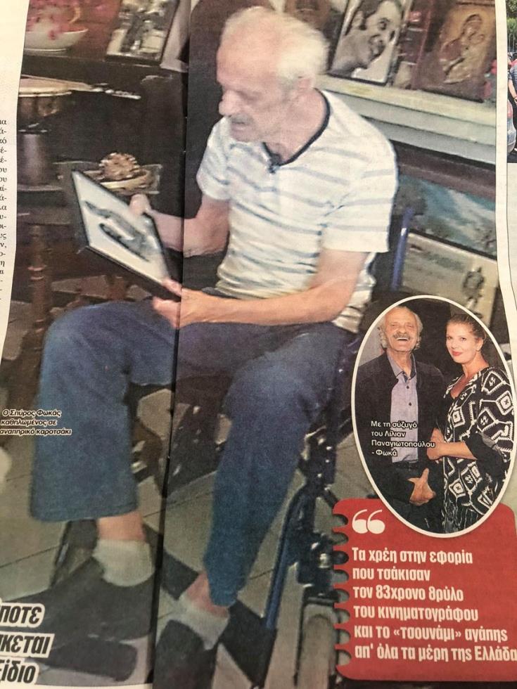 Σύμφωνα με το δημοσίευμα, η σύζυγός του Λίλιαν Παναγιωτοπούλου - Φωκά, καθώς και ο φύλακας άγγελός του που βρίσκεται νύχτα μέρα στο πλευρό του, ο Λευτέρης, τον μετέφεραν εσπευσμένα στο νοσοκομείο, όπου οι γιατροί έκαναν υπεράνθρωπες προσπάθειες ώστε να καταφέρει ο σπουδαίος ηθοποιός να πάρει εξιτήριο. Ωστόσο, η υγεία του Σπύρου Φωκά είχε ήδη κλονιστεί με αποτέλεσμα να παραλύσει μερικώς στο σώμα του.