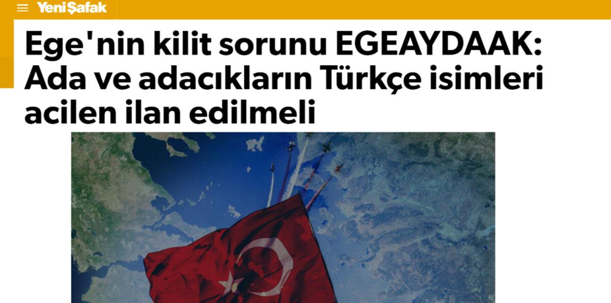 Με τίτλο: «Το βασικό πρόβλημα στο Αιγαίο: Πρέπει να ανακοινωθούν επειγόντως τουρκικά ονόματα στα νησιά και στις νησίδες EGAYDAAK», η εφημερίδα παρουσιάζει τις εμπρηστικές απόψεις του Χασάν Οζκάν, στελέχους του Κέντρου Στρατηγικών Ερευνών Ρούμελης-Βαλκανίων, ο οποίος έχει καταγωγή από την ελληνική Θράκη.