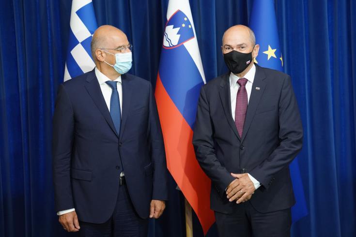 Όπως σημείωσε στις δηλώσεις του ο κ. Δένδιας, κατά τη συνάντησή του με τον Σλοβένο ομόλογό του συζητήθηκε, μεταξύ άλλων θεμάτων, και η κατάσταση στην Ανατολική Μεσόγειο.
