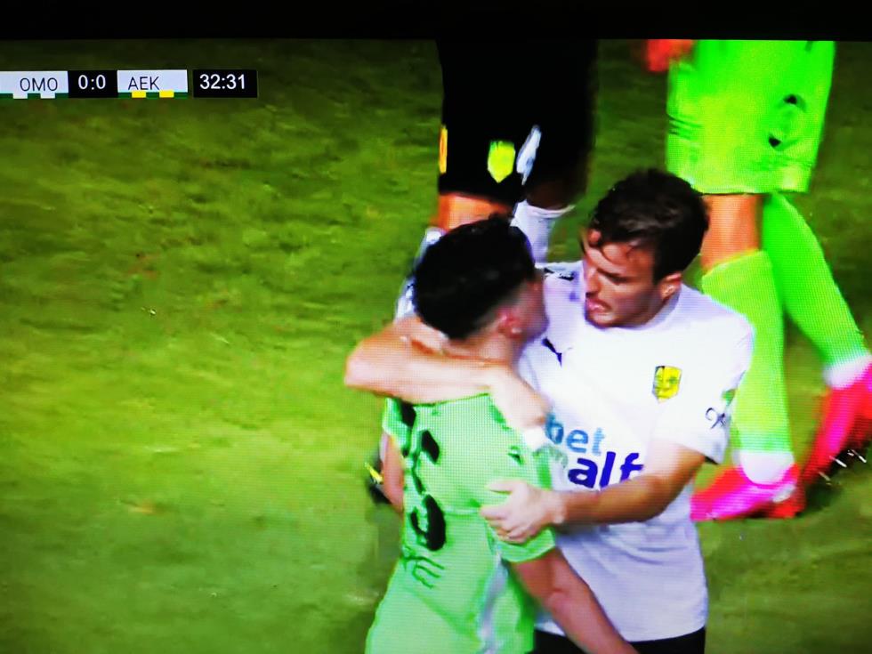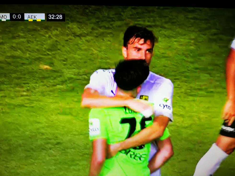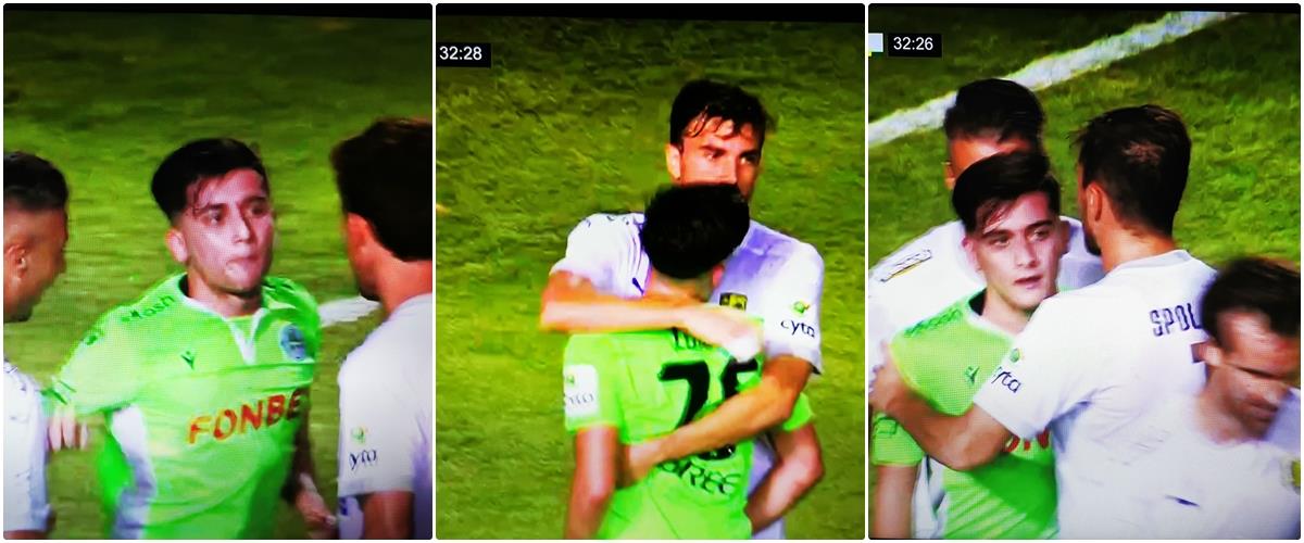 Άναψαν τα αίματα στο ΓΣΠ, όταν ο ποδοσφαιριστής της Ομόνοιας Λοίζος Λοίζου βρέθηκε στην περιοχή της ομάδας της Λάρνακας, με τον Τρουγίολς να τον ανακόπτει και αυτός να πέφτει στο έδαφος.