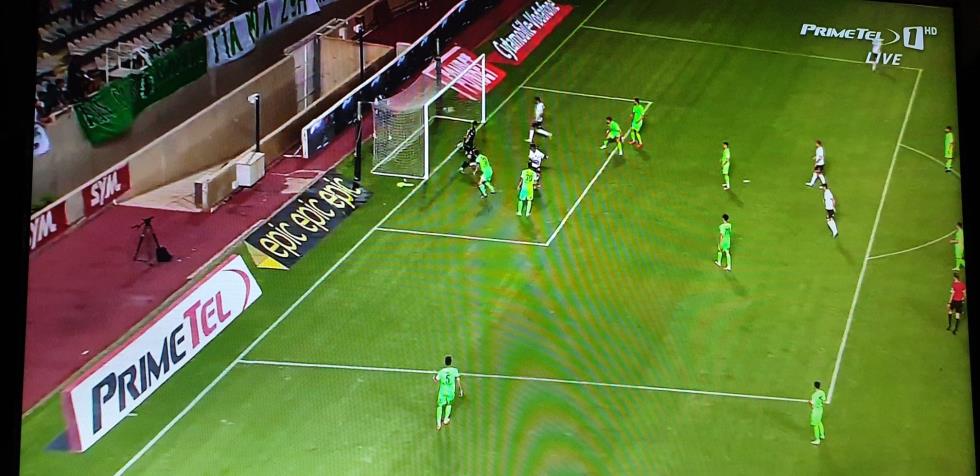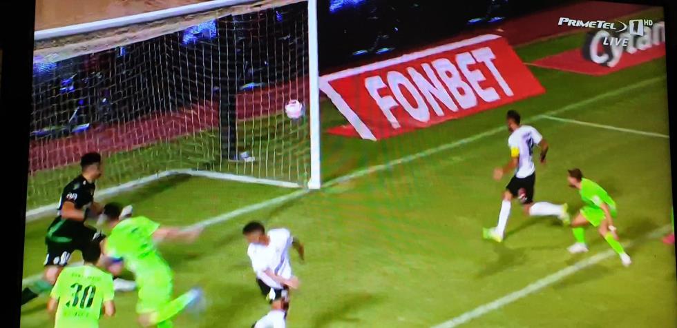 Αιφνιδίασε την άμυνα της Ομόνοιας ο Τρουγιόλς, καθώς σηκώθηκε πιο ψηλά από όλους πήρε την κεφαλιά και έκανε τη κεφαλιά και έφερε το ντέρμπι στα ίσα.
