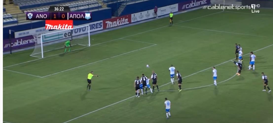 Ο Λόρια, φαίνεται να δείχνει στον Μπένσοπ με το κεφάλι του την αριστερή πλευρά του τέρματος, όπου και εκτέλεσε το πέναλτι ο επιθετικός του Απόλλωνα, με τον τερματοφύλακα της Ανόρθωσης να πέφτει δεξιά.
