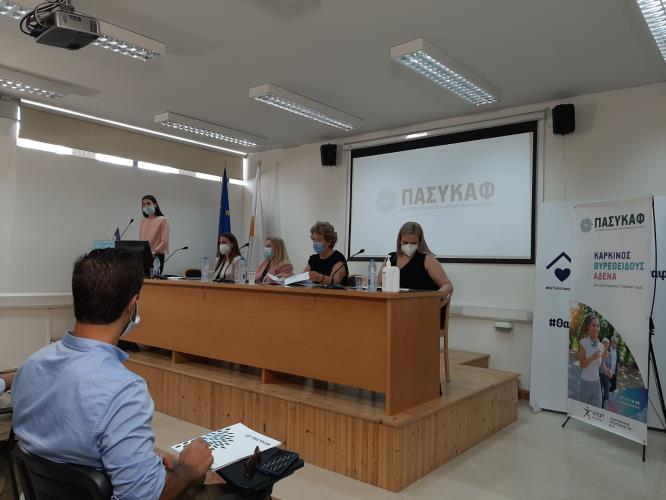 Στην ομιλία της, η Πρόεδρος του ΠΑΣΥΚΑΦ Δρ Άννα Αχιλλεούδη δήλωσε ότι στο πλαίσιο του προγράμματος ο ΠΑΣΥΚΑΦ πραγματοποιεί εκστρατεία ενημέρωσης και παράλληλα καλεί τα άτομα με εμπειρία καρκίνου του θυρεοειδούς αδένα να ενταχθούν στην ομάδα του προγράμματος με στόχο τη διαφύλαξη των δικαιωμάτων και της ποιότητας ζωής τους.