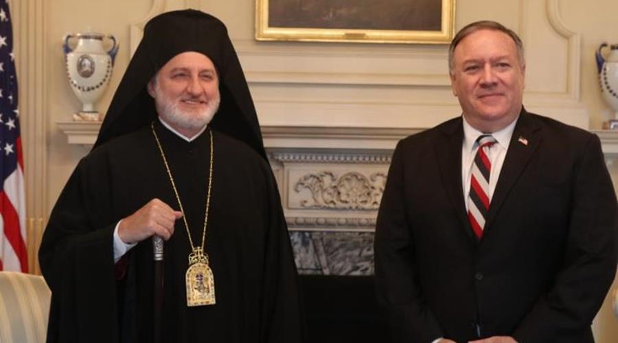 Ο Αρχιεπίσκοπος Αμερικής Ελπιδοφόρος έγινε σήμερα το πρωί δεκτός στο Στέιτ Ντιπάρτμεντ από τον Αμερικανό Υπουργό Εξωτερικών Μάικ Πομπέο. Όπως αναφέρει ανακοίνωση της Αρχιεπισκοπής Αμερικής, συζήτησαν μία σειρά από σημαντικά ζητήματα για το Οικουμενικό Πατριαρχείο, την Ομογένεια, καθώς και για τους λαούς της Ελλάδας, της Κύπρου και της Τουρκίας.