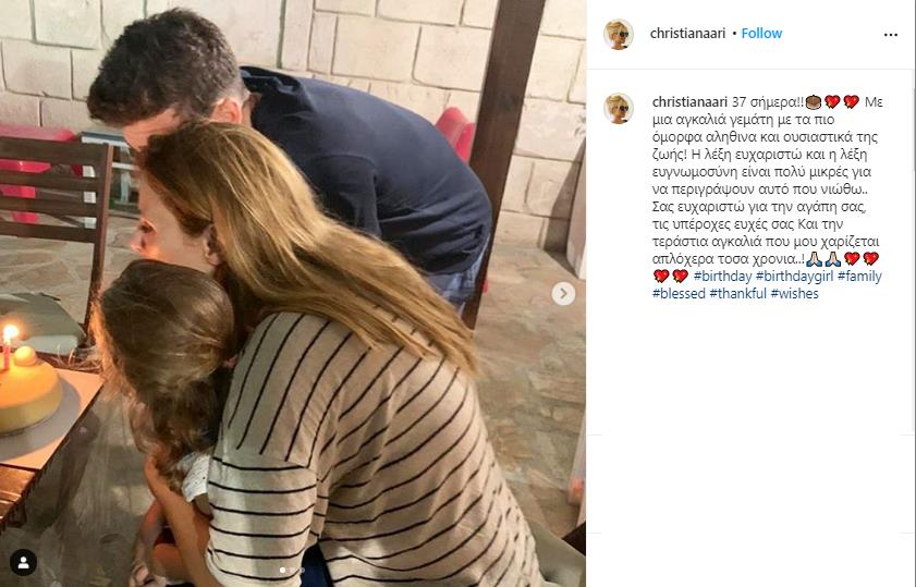 «37 σήμερα!!🎂💖💖 Με μια αγκαλιά γεμάτη με τα πιο όμορφα αληθινα και ουσιαστικά της ζωής! Η λέξη ευχαριστώ και η λέξη ευγνωμοσύνη είναι πολύ μικρές για να περιγράψουν αυτό που νιώθω.. Σας ευχαριστώ για την αγάπη σας, τις υπέροχες ευχές σας Και την τεράστια αγκαλιά που μου χαρίζεται απλόχερα τοσα χρονια..!🙏🏻🙏🏻💖💖💖💖 #birthday #birthdaygirl #family #blessed #thankful #wishes», έγραψε στην λεζάντα της ανάρτησης της!