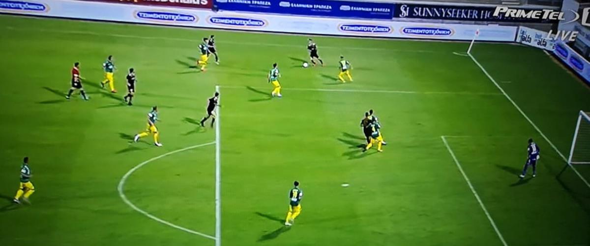 Ο επιθετικός της ΑΕΛ Μπάμπιτς έκανε το ψαλιδάκι, ο Τέουκενς εκτινάχθηκε, αλλά η μπάλα βρήκε στην οριζόντια δοκό.