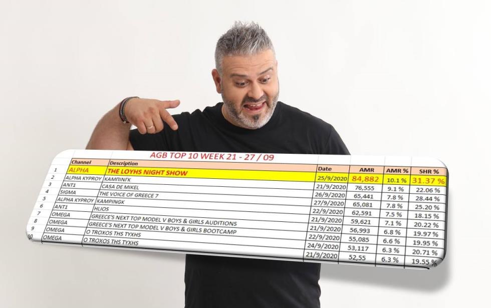 Σύμφωνα με τα επίσημα στοιχεία της AGB Nielsen στην κορυφή της λίστας για την βδομάδα 21 μέχρι και 27 Σεπτεμβρίου, η πρώτη σε τηλεθέαση εκπομπή ήταν το «The Louis Night Show» με ποσοστό 31,3%.