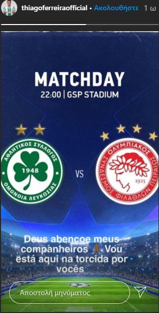 Το μήνυμα του Τιάγκο από το σπίτι λίγο πριν το ματς με τον Ολυμπιακό