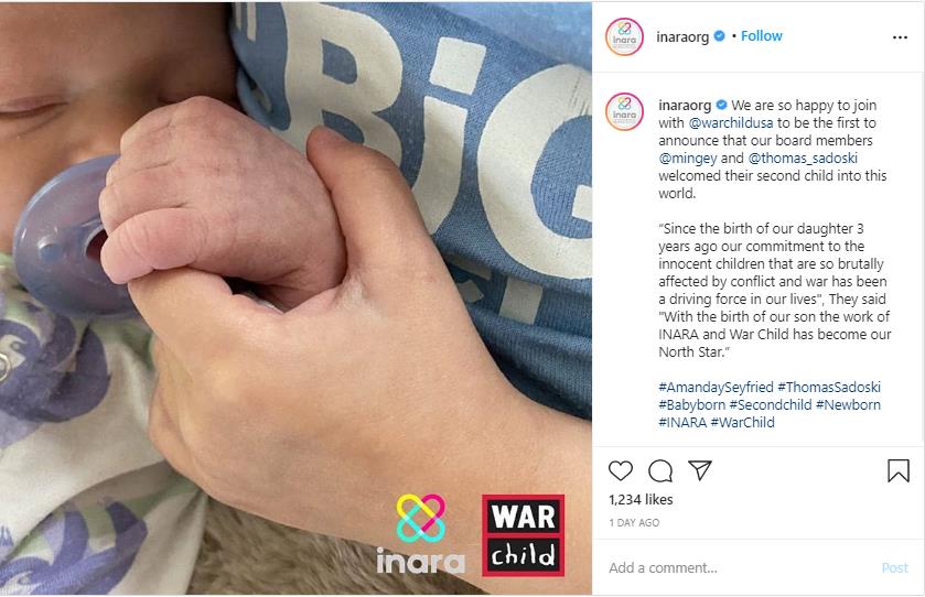 «Από τη γέννηση της κόρης μας πριν από 3 χρόνια, η δέσμευσή μας στα αθώα παιδιά που επηρεάζονται βίαια από συγκρούσεις και πόλεμο υπήρξε οδηγός στη ζωή μας. Με τη γέννηση του γιου μας η δουλειά του War Child είναι πλέον το δικό μας Σέλας», ήταν η δήλωση του ζευγαριού.