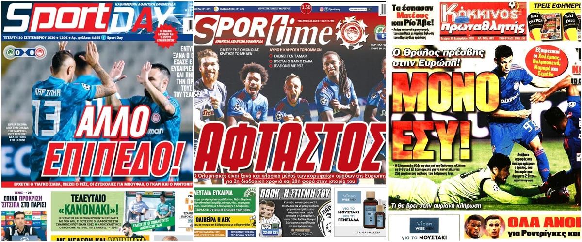 Με αποθεωτικά σχόλια για τον Ολυμπιακό συνοδεύονται από το πρωί τα πρωτοσέλιδα στα Ελλαδικά ΜΜΕ, μετά την πρόκρισή των ερυθρολεύκων στο ΓΣΠ και την είσοδο τους στους ομίλους του Τσάμπιονς Λιγκ, για δεύτερη συναπτή χρονιά και 20η στην ιστορία τους.