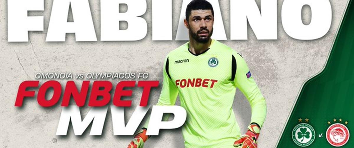 Μετά από σχετική ψηφοφορία, FONBET MVP για τον αγώνα με τον Ολυμπιακό αναδείχθηκε ο Φαμπιάνο. Ο Βραζιλιάνος τερματοφύλακας συγκέντρωσε 69% και 812 ψήφους από τους συνολικά 1169 που ψήφισαν.