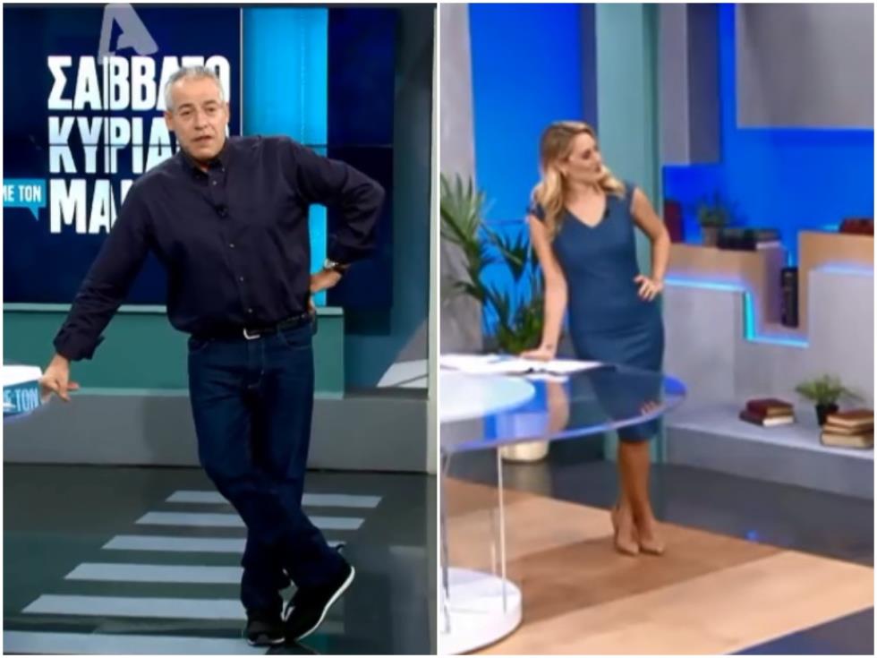 «Τώρα τελευταία έχω δει ότι πολλοί διάσημοι παρουσιάζουν την εκπομπή έτσι… Το έχω δει στην τηλεόραση και είπα να το κάνω κι εγώ. Ξεσηκώνω φιγούρες», είπε ο Νίκος Μάνεσης κάνοντας μια χαρακτηριστική πόζα της Ελεονώρας Μελέτη.
