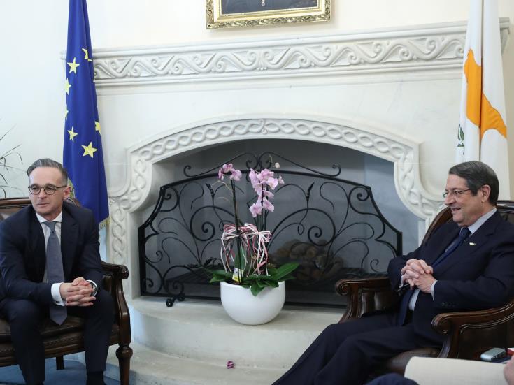 Ο Γερμανός ΥΠΕΞ Χάϊκο Μαας έγινε το μεσημέρι δεκτός από τον Πρόεδρο Αναστασιάδη, στο πλαίσιο επίσκεψης εργασίας στην Λευκωσία.