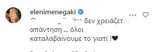Η Ελένη Μενεγάκη σχολίασε τότε: «δεν χρειάζεται απάντηση … όλοι καταλαβαίνουμε το γιατί !»