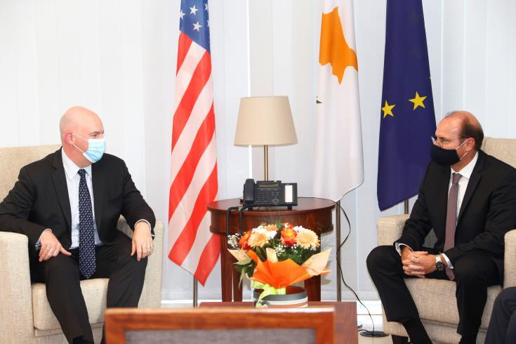 Ζητήματα διμερούς ενδιαφέροντος με έμφαση στην περαιτέρω εμβάθυνση της αμυντικής συνεργασίας μεταξύ της Κυπριακής Δημοκρατίας και των ΗΠΑ, υπογραμμίστηκαν στη συνάντηση του Υπουργού Άμυνας Χαράλαμπου Πετρίδη με τον Αμερικανό βοηθό Υπουργό Εξωτερικών, αρμόδιο για πολιτικό - στρατιωτικές υποθέσεις Clarke Cooper.