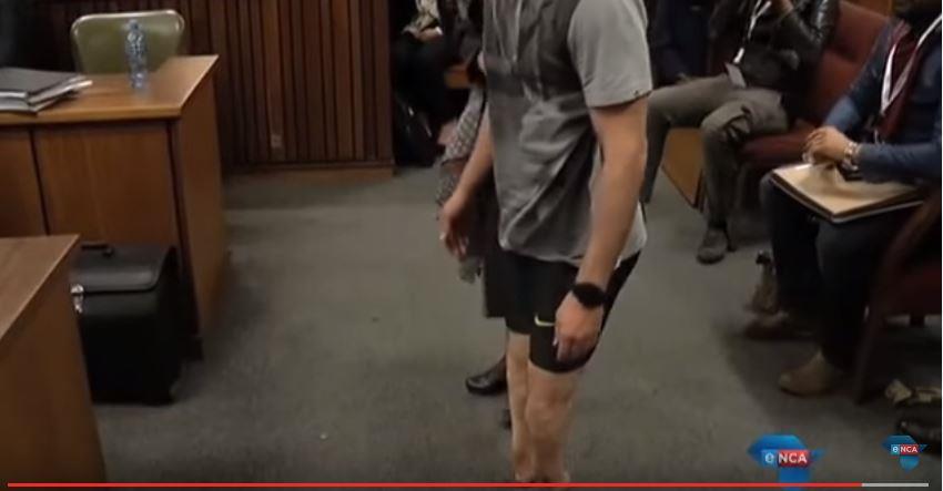Ο Νοτιοαφρικανός παραολυμπιονίκης κυριολεκτικά τρέκλιζε μέσα στο δικαστήριο με κλάματα να τρέχουν από τα μάτια του ενώ η μπλούζα του ήταν βρεγμένη από τον ιδρώτα λόγω της προσπάθειάς του. Στη θέα του Πιστόριους να προσπαθεί να ισορροπήσει συγγενείς και φίλοι του δεν άντεξαν και έβαλαν τα κλάματα. Στο τέλος ούτε και ο ίδιος δεν άντεξε το μαρτύριο και γονάτισε με έναν δικηγόρο να του δίνει ένα χαρτομάντηλο προκειμένου να σκουπίσει τα δάκρυά του.