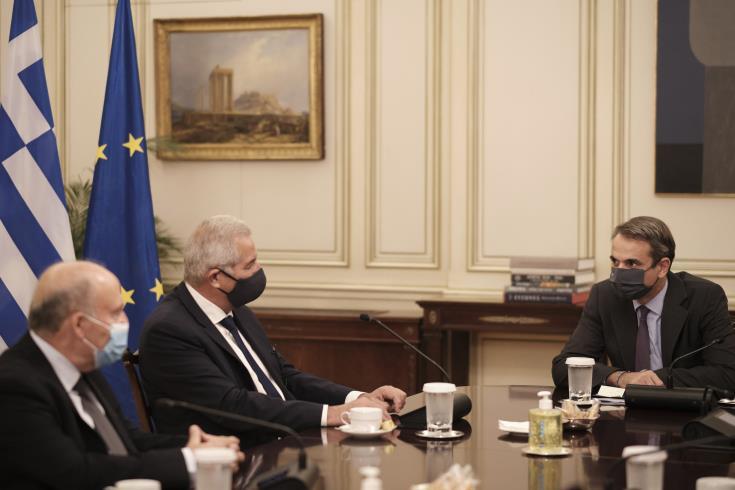 Οι προοπτικές επίλυσης του Κυπριακού μετά τις πρόσφατες «εκλογές» στα κατεχόμενα και οι τουρκικές προκλήσεις στην περιοχή της Ανατολικής Μεσογείου, βρέθηκαν στο επίκεντρο των συζητήσεων του Άντρου Κυπριανού με τον Έλληνα Πρωθυπουργό, Κυριάκο Μητσοτάκη, στο Μέγαρο Μαξίμου.