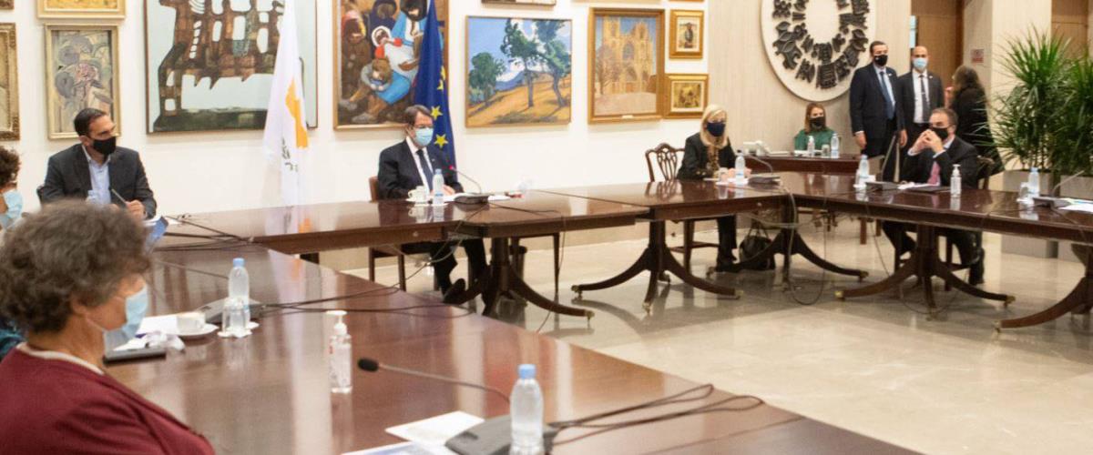 Ο Πρόεδρος της Δημοκρατίας κ. Νίκος Αναστασιάδης προήδρευσε σήμερα, στο Προεδρικό Μέγαρο, συνεδρίασης του Υπουργικού Συμβουλίου όπου αποφασίστηκε η παραχώρηση έκτακτου Χριστουγεννιάτικου Δώρου για το 2020 στους δικαιούχους ελάχιστου εγγυημένου εισοδήματος, στους λήπτες δημόσιου βοηθήματος, στους χαμηλοσυνταξιούχους και σε άλλους βοηθούμενους από τις Υπηρεσίες Κοινωνικής Ευημερίας.