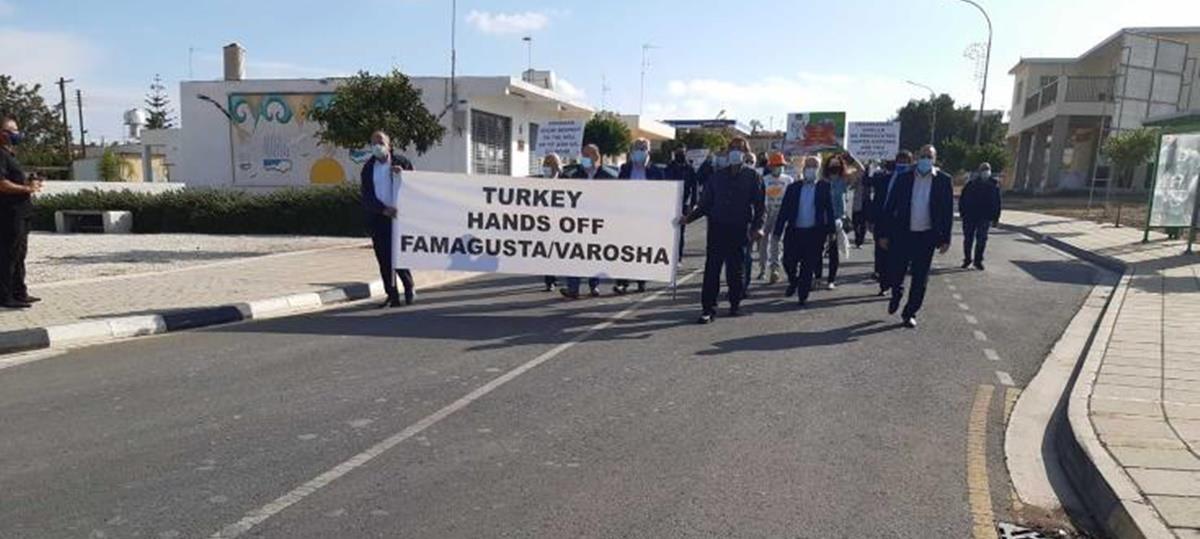 Ακολούθησε, με τη συμμετοχή βουλευτών της Αμμοχώστου, πορεία προς το οδόφραγμα της Δερύνειας, όπου ο Δήμαρχος επέδωσε σε εκπρόσωπο των Ηνωμένων Εθνών ψήφισμα στο οποίο σημειώνεται πως «με αισθήματα θλίψης, θυμού και οργής παρακολουθούμε μαζί με στους συμπολίτες μας τις συνεχιζόμενες απαράδεκτες προκλήσεις της Τουρκίας και του παράνομου καθεστώτος του ψευδοκράτους στην περίκλειστη περιοχή της Αμμοχώστου. Η σημερινή ενέργεια του κ. Ερτογάν, να εισέλθει στην περίκλειστη περιοχή της πόλης μας για να κάνει πικνίκ, αποτελεί άλλη μια προκλητική ενέργεια εις βάρος της πατρίδας μας».