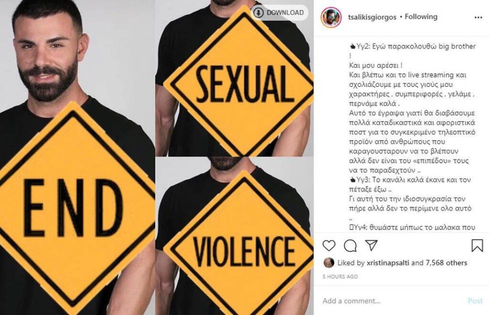 Θυμίζουμε πως ο Γιώργος Τσαλίκης ήταν ένας από τους πολλούς επώνυμους, που είχε τοποθετηθεί δημόσια μετά το περιστατικό μέσα στο σπίτι του Big Brother.