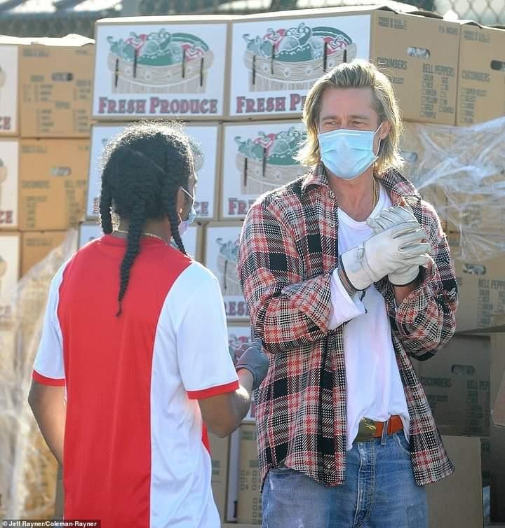 Με ένα καρό πουκάμισο, φαρδύ τζιν και τα ξανθά του μαλλιά ανέμελα, κουβάλησε κιβώτια, μίλησε με τους ανθρώπους και δεν σταμάτησε να χαμογελάει! Όπως μάλιστα ανέφερε πηγή στην Daily Mail ο Brad φορούσε μάσκα, οπότε μάλλον κανένας δεν κατάλαβε ποιος πραγματικά ήταν!