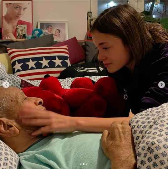 «Περάσαμε την Παρασκευή στο σπίτι με τον μπαμπά μου που γύρισε από το νοσοκομείο. Πάλι. Και ακόμη κι αν είναι επικίνδυνο να τον επισκεφθούμε κατά τη διάρκεια αυτής της πανδημίας, πρέπει να είμαστε εκεί γι ‘αυτόν, καθώς αυτός, ο πρώην μπόξερ, καθαριστής και παίκτης είναι κολλημένος στο κρεβάτι. Η Μελίνα χαϊδεύει τον παππού της και μάλιστα τον ενθάρρυνε να περπατήσει τρία βήματα» σημειώνει χαρακτηριστικά η παρουσιάστρια στη λεζάντα που συνοδεύει τις δύο εικόνες. «Η ηρωική αδελφή μου Σόφια είναι εκεί καθημερινά και είμαι τόσο ευγνώμων που έχω αυτήν και τη μικρότερη αδερφή μου Δήμητρα! Μετά το δείπνο και το καθάρισμα περάσαμε από το σπίτι της μητέρας μου για να της δώσουμε ένα φιλί».
