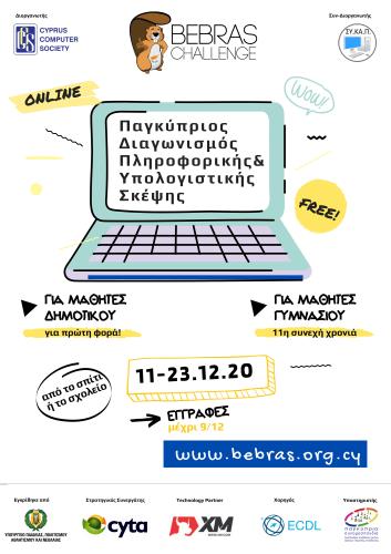 Το Cyprus Computer Society σε συνεργασία με το ΣΥΚΑΠ και με την έγκριση του ΥΠΠΑΝ διοργανώνει το διαδικτυακό Διαγωνισμό Πληροφορικής Bebras για παιδιά 9-15 χρονών.