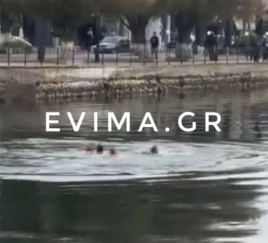 Όπως δείχνει το βίντεο του evima.gr με το κόκκινο μαγιό που πηδάει στο νερό αμέσως μετά ακινητοποιείται καθώς χτύπησε σε βράχο με αποτέλεσμα όλοι όσοι βούτηξαν στα παγωμένα νερά να προστρέξουν σε βοήθεια αφού δεν μπορούσε να κολυμπήσει.