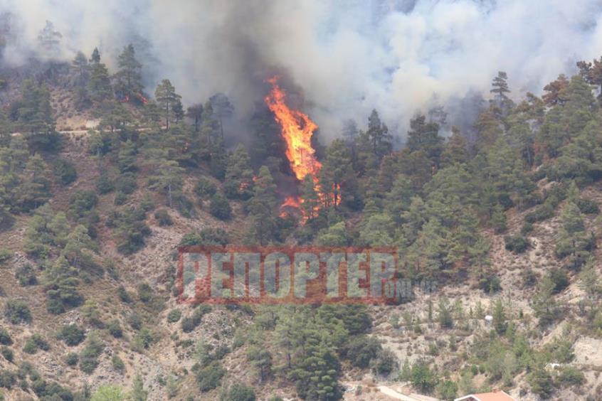 Εμείς ανέφερε δεν υποστήκαμε ζημιές ωστόσο πενήντα με εκατό μέτρα από την Παναγία Χρυσοκουρδαλιώτισα στην κοινότητα Κούρδαλι απειλήθηκαν κατοικίες.