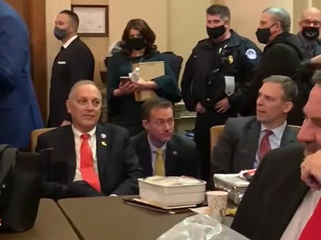Το βίντεο από το δωμάτιο, το οποίο ελήφθη από το Punchbowl News, δείχνει αρκετούς Ρεπουμπλικανούς γερουσιαστές να μην φορούν μάσκα – συμπεριλαμβανομένων των Άντι Μπιγκς (Αριζόνα), Μάικλ Κλάουντ (Τέξας), Μάρτζορι Τέιλορ Γκριν (Τζόρτζια), Μαρκγουέιν Μούλιν (Οκκλαχόμα) και Σκοτ Πέρι (Πενσυλβάνια).